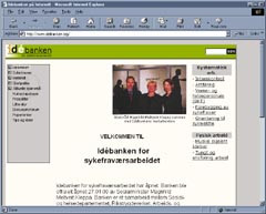Idébanken for sykefraværsarbeid er finansiert av Sosial- og helsedepartementet. Prosjektet avsluttes ved utgangen av 2002. Bankens lokaler er i Statens Arbeidsmiljøinstitutt i Oslo. Les mer om prosjektet på Internett: www.idebanken.org/