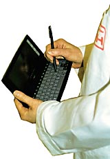 Nå kan legene ved Aker sykehus ta med seg en håndholdt datamaskin inn på sengeposten og via noen tastetrykk fylle ut nødvendige rekvisisjoner – på stedet. Deretter kan de gå til skriveren og hente dem.