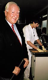 Og Einar Wang går mer enn gjerne foran som et godt eksempel. Opp og ned korridorer, trapper og i heiser har han en hyggelig hilsen og et vennlig ord til nær sagt alle han møter. På chevaleresk vis lar han andre gå foran, åpner galant dører, uten å skjele til om medmennesket er kledd i blå overall eller hvit frakk. Men Einar Wang er mer enn en høflig eldre herre på sine sykehusvandringer. Han har blikket med seg, observerer, påpeker kritikkverdige eller prisverdige forhold, kommer med råd om hva som kan gjøres bedre og hvordan. Særlig har han viet det kulinariske tilbudet ved sykehuset oppmerksomhet, både for ansatte og for pasienter.