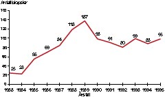 Vi ser at biopsiaktiviteten har variert betydelig. Tallet er nesten seksdoblet fra 1983 til 1989. Denne økningen samsvarer i tid med den økte utbredelse av mammografi i Norge. Fallet i merkebiopsiaktivitet samsvarer med den ultrasonografiske og cytologiske aktivitet. Vi kan ikke sikkert påvise en årsaksammenheng mellom disse fenomenene. Forklaringen kan også være utvikling av sikrere mammografisk diagnostikk i samme periode. Økt bruk av cytologisk diagnostikk medfører definitivt en økning av antall terapeutiske merkebiopsier.