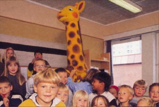 Sjiraffen Georg som hater røyk, har lenge vært å finne på helsestasjoner og barselavdelinger. Nå har han også begynt på skolen.