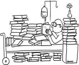 De lesevaner pasienten har fra før bringer han naturligvis med seg inn i sykehus. De som vanligvis leser mer seriøs litteratur, ønsker den type bøker også som pasient. Noen liker å lese om sykdom. Maria, Maria om afasi av Anne Karin Elstad er mye lest. Denne har også en lykkelig slutt. Slik er det ikke med Jon Magnus’ Veien til Karlsvogna om kreft, men denne er likevel populær. – Vi kjenner historien i de bøkene vi tilbyr og opplyser pasientene om bokens forløp i slike tilfeller, sier Ragnhild Stange. Ved Det Norske Radiumhospital har de ifølge pasientvenn Liv Christophersen ikke kjøpt inn denne boken: – Vi ønsker ikke å gi pasientene bøker som handler om døden, opplyser hun.