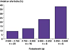 Andelen makrosome barn blant alle fødte varierer i ulike undersøkelser, fra 1,6 % i en undersøkelse i Los Angeles (2) til 4,0 % i vår undersøkelse.