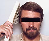 Hodebunnen ble avskjellet over natten med salisylhårolje som neste morgen ble vasket ut med tjæresjampo. Pasientene ble randomisert i to behandlingsgrupper. 22 pasienter fikk behandling med UV-B-kam (Dermalight 80, Waldmann Lichttechnik, Dr. R. Hönle, München, Tyskland) med to bredspektrede UV-B-lysrør. Maksimalt emisjonsspektrum for UV-B-lysrørene var 310 – 315 nm med lysstyrke 2,5 m W/cm2 ved 30 cm avstand. UV-B-kammen ble ført med ca. 5 cm avstand til hodebunnen. Høydose UV-B var nødvendig for å kompensere for hårets beskyttende effekt (fig 1). 22 pasienter ble behandlet med betametasonoppløsning, som ble systematisk smurt i affiserte områder og deretter massert godt ned i hodebunnen. Begge gruppene ble behandlet en gang daglig (fem dager/uke) i tre påfølgende uker, totalt 15 behandlinger.