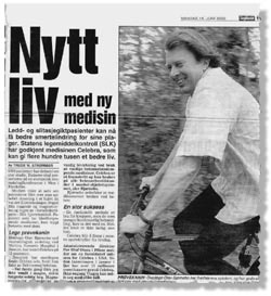 Det er grunn til å gratulere firmaene Pfizer og Pharmacia med en vellykket lansering av legemidlet Celebra. Spesielt er legemidlets fortreffeligheter gjort rede for i et større oppslag i avisen Dagbladet dagen før midlet var å finne i hyllene på norske apoteker (1). Kopi av avisoppslaget er sendt meg fra de nevnte firmaer for at jeg skal kunne svare på spørsmål fra eventuelle nysgjerrige pasienter. Kollega Olav Bjørnebo, som selv har en revmatoid lidelse, har ifølge oppslaget ”gode erfaringer” med medikamentet. Jeg har noen kommentarer til hans medvirkning til lanseringen.