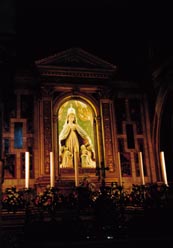 Det angis at jomfru Maria åpenbarte seg her 7.3. 1426 og 1.8. 1428, og derfor ble kirken reist. Det har vært bygd på den i flere omganger opp gjennom tidene, slik at stilblandingen er tydelig. Alteret som er gjengitt på forsidebildet, er således ganske nytt. Det er utført i Carrara-marmor og ble innviet 2.8. 1928 i anledning av 500-årsjubileet for Marias åpenbaringer.