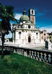 Høyt, fritt og med vid utsikt, på en åsrygg, opp fra den norditalienske byen Vicenza via en bratt 700 m lang overdekket gang fra 1746 med 150 buer, ligger en stor kirke, Il Santuario della Madonna di Monte Berico.