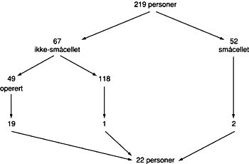 Det lyktes å kartlegge røykevaner hos samtlige, men hos 18 har man ikke opplysning om tobakksmengden og hvor lenge vedkommende hadde røykt.