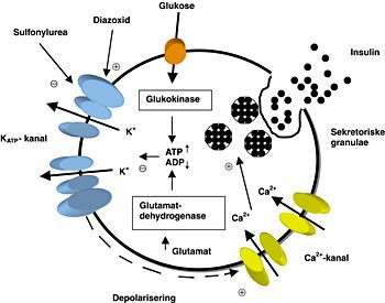 Glutamatdehydrogenase eller Glukokinase Økt funksjon som gir økt insulinsekresjon