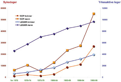 – Vi må se på dette som det samfunnsproblemet det er. Det er ikke forhold på arbeidsplassen alene som ligger bak, men også familieforhold, sosiale forhold, osv. De siste par tiår har det skjedd en gradvis økning i sykefravær og uførhet i den norske befolkning, og analysen illustrerer at legen er en del av samfunnet og påvirkes som alle andre. At legene som omfattes av syke- og pensjonsordningen i større grad enn befolkningen for øvrig får en psykisk diagnose, kan skyldes at leger i større grad erkjenner at det er en sammenheng mellom belastningslidelser og psykiske lidelser. Det kan være at leger i større grad enn andre opplever en psykiatrisk diagnose som mindre stigmatiserende enn for eksempel fibromyalgi, sier Eldjarn.