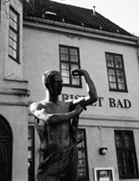 Utenfor Bislet Bad i Oslo står det en skulptur som kan inspirere til refleksjoner over offentlige bad og deres betydning opp gjennom tiden. Den heter Efter badet og er utført av Anders Svor (1864 – 1929). Man kan formelig se hvordan mannen med håndkleet føler seg ren, og hvordan han med tilfredshet iakttar muskelspillet i overarmen. Statuen var en gave fra Selskabet for Oslo Byes Vel da Bislet Bad stod ferdig i 1920.