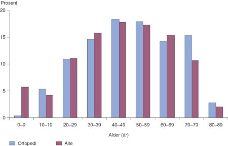Aldersfordelingen er litt forskjellig fra totalmaterialet, idet det er 5 % færre pasienter under ti år og 5 % flere pasienter over 70 år enn i det totale materialet. Dette er en naturlig tendens, i overensstemmelse med forekomsten av lidelser i muskel- og skjelettsystemet.