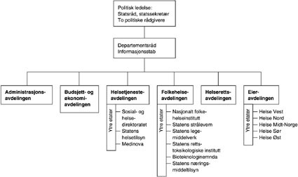 Administrativt ligger direktoratet under Helsedepartementet, men sorterer faglig under både Helsedepartementet og Sosialdepartementet.