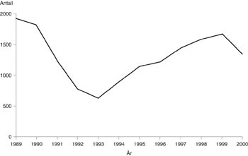 I uførepensjonsregisteret kan diagnosen fibromyalgi følges tilbake til 1989. Antall nye pensjonister med fibromyalgi gikk sterkt ned frem mot 1993, for deretter å øke igjen (fig 1). Det er i dag færre nye uførepensjonister med diagnosen fibromyalgi enn det var i 1989 – 90.