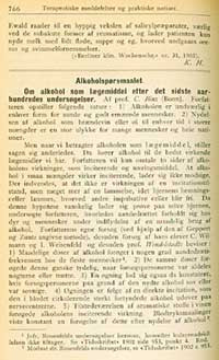Er alkohol et næringsmiddel som kjød og brød, og kan den behandles som en ven, eller skal man anse den for en fiende, som skader de celler, den kommer i berørelse med? Dette spørsmaal er ifølge Duclaux hidtil uløst. […] Det hele er i utilbørlig grad blevet en følelsessag. […]