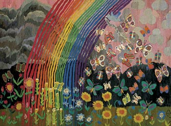 Else Marie Jakobsen ble bedt om å lage et minneteppe til Fagerholt skole hvor den ene av småjentene hadde vært elev. Hun visste med en gang at hun måtte spenne en håpets regnbue over Baneheias mørke og grå skyer. Men hun trengte noe mer. Hun tok kontakt med Lena Sløgedal Paulsens medelever og spurte dem om hjelp. Barna gav henne fargesterke tegninger av blomster og sommerfugler. Kaktusene smilte, en blåveis gliste med to tenner på tørk, en fugl hadde et bånd i nebbet hvor det stod skrevet: «Håper du har det godt Lena». Bare noen få blåveis bøyde hodet i sorg. Motiv fra tegningene ble vevd inn i minneteppet.