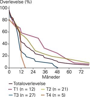 Et liknende materiale fra Rikshospitalet (5) hadde samme mediane overlevelse, men høyere tre- og femårsoverlevelse. Denne forskjellen kan skyldes at vårt materiale var mer heterogent, med flere palliative reseksjoner med ufrie reseksjonsrender, høyt T-stadium samt metastaser.