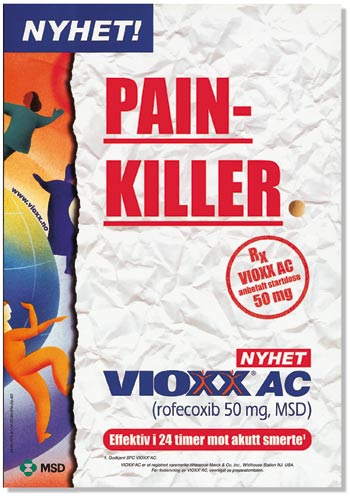 Diskusjonen rundt den kardiovaskulære sikkerheten til rofecoxib startet med VIGOR-studien, der man undersøkte den gastrointestinale sikkerheten til rofecoxib 50 mg sammenliknet med naproksen 1 000 mg hos pasienter med revmatoid artritt (2). Her fant man at rofecoxib signifikant reduserte risikoen for alvorlige gastrointestinale bivirkninger med 54 %, mens kompliserte bivirkninger som blødning, perforasjon og obstruksjon ble signifikant redusert med 57 % sammenliknet med naproksen. I denne studien fant man imidertid også en statistisk signifikant høyere forekomst av trombotiske kardiovaskulære hendelser i rofecoxibgruppen (n = 45) sammenliknet med naproksengruppen (n = 19). Dette er beskrevet nærmere i preparatomtalen for rofecoxib; forskjellen skyldes vesentlig ulik forekomst av ikke-fatalt hjerteinfarkt (18 for rofecoxib versus fire for naproksen).