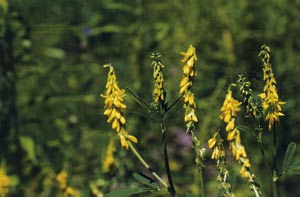 Legesteinkløver (Melilotus officinalis), hvitsteinkløver (Melilotus alba) og strandsteinkløver (Melilotus altissima) finnes alle i Norge. Meli er gresk for honning, og lotus er et gammelt navn på mange planter. Legesteinkløver og hvitsteinkløver er meget like, bortsett fra fargen, og finnes først og fremst på tørr grus langs veier og jernbaner (1) . Legesteinkløver er gul, slik bildet, som er tatt ved en gangvei langs Sandvikselven, viser. Blomstene sitter i toppen av stilkene som et aks. De har en duft av kumarin, som minner om duften av tørt høy. Blomsterduften kommer best frem når blomstene tørker. Kumarinforbindelser er vitamin K-antagonister (2) . Kumarinet reduserer motstand ved gjennomblødning i kapillarer og lymfekar som utvides. Derved skal det virke antiinflammatorisk.