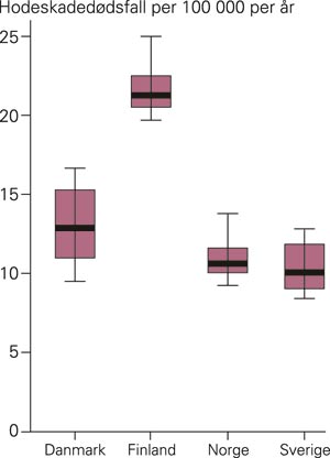I perioden 1987 – 2000 døde det dobbelt så mange av hodeskader i Finland som i Danmark, Norge og Sverige
