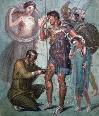 Når den første greske legen ankom Roma, er selvsagt umulig å si. Men ifølge mytene ble legekunsten innført i år 293 f.Kr, da byen var rammet av en alvorlig epidemi. På grunn av pesten besluttet senatet å sende en delegasjon for å hente Apollons sønn, legeguden Asklepios, til Roma. Begynnelsen på Hellas’ medisinske invasjon av Romerriket er skildret blant annet av den romerske dikteren Ovid: «En grusom pest fylte engang den latinske luft, og skrøpelige kropper ble dekket av blodløs sykdom. Kraftløse etter utallige begravelser skimtet de døden; ingen forsøk, ingen kunster kunne helbrede, og romerne søkte hjelp fra himmelen. De henvendte seg til Delfi, som ligger i midten av jorden, for å be Apollons orakel om han ville vandre ned og ende all byens ulykke ved å bringe helse til de ulykkelige.» (6).