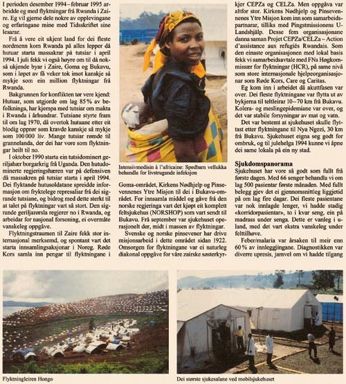 Tidligere i Tidsskriftet Flyktningene fra Rwanda () sporsmal_grey_rgb Artikkel Brev fra Zaire i Tidsskriftet nr. 22/1995 (s.2802–3) handlet om flyktningene fra Rwanda. Forfatteren forteller om bakgrunnen for flukten og om opplevelser fra arbeidet som lege i flyktningleiren. Tidsskriftet ønsker å sette søkelys også på det som skjer utenfor Norges grenser og opprettet i 2003 en egen spalte for Internasjonal medisin. Kommentarer ( 0 ) Dette kommentarfeltet modereres, men kommentarer blir ikke redaksjonelt behandlet ut over å sikre at de følger retningslinjer for vårt kommentarfelt. Denne artikkelen ble publisert for mer enn 12 måneder siden, og vi har derfor stengt for nye kommentarer. Publisert: 22. september 2005 Utgave 18, 22. september 2005 Tidsskr Nor Lægeforen 22. september 2005 125 : 2586-7 Publisert: 22. september 2005 Utgave 18, 22. september 2005 Tidsskr Nor Lægeforen 2005 125 : 2586-7 PDF Får du ikke vist PDF-filen eller vil lagre filen, kan du høyreklikke på PDF-ikonet. Velg «Lagre mål/fil som..» og hent så opp PDF-filen i for eksempel Acrobat Reader. Skriv ut Anbefalte artikler