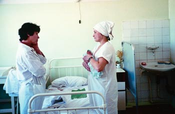 Få russiske kvinner hadde sin partner eller en annen nær person med seg da de fødte eller i de første timene etter fødselen. I 2000 svarte halvparten av dem at de ikke ønsket å ha noen med seg under fødselen; i 2002 var andelen steget til to tredeler. Bare rundt en femdel av kvinnene hadde barnefaren sammen med seg de første timene etter at barnet var født. Dette stod i sterk kontrast til de norske kvinnene. Nesten alle (95 %) hadde en nær person med seg både under fødselen og sammen med seg etter at barnet var født (1) .