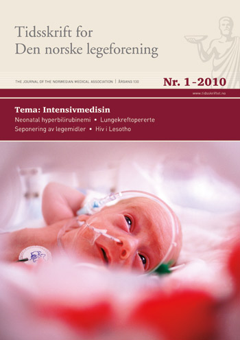 Forsidebildet Nytt år og nytt liv () sporsmal_grey_rgb Artikkel Illustrasjonsfoto © Tom Stewart/Corbis/SCANPIX For noen kan starten på livet være komplisert, og det gjøres en stor innsats for å redde disse små. Flere aspekter ved intensivmedisinen tas opp i temaserien som innledes i dette nummeret. I Tidsskriftet markerer vi inngangen til det nye tiåret med å presentere stoffet på en ny og spennende måte – for å sikre enda bedre kontakt med dere lesere. Kommentarer ( 0 ) Dette kommentarfeltet modereres, men kommentarer blir ikke redaksjonelt behandlet ut over å sikre at de følger retningslinjer for vårt kommentarfelt. Denne artikkelen ble publisert for mer enn 12 måneder siden, og vi har derfor stengt for nye kommentarer. Publisert: 14. januar 2010 Utgave 1, 14. januar 2010 Tidsskr Nor Legeforen 14. januar 2010 130 : 1 Publisert: 14. januar 2010 Utgave 1, 14. januar 2010 Tidsskr Nor Legeforen 2010 130 : 1 PDF Får du ikke vist PDF-filen eller vil lagre filen, kan du høyreklikke på PDF-ikonet. Velg «Lagre mål/fil som..» og hent så opp PDF-filen i for eksempel Acrobat Reader. Skriv ut Anbefalte artikler
