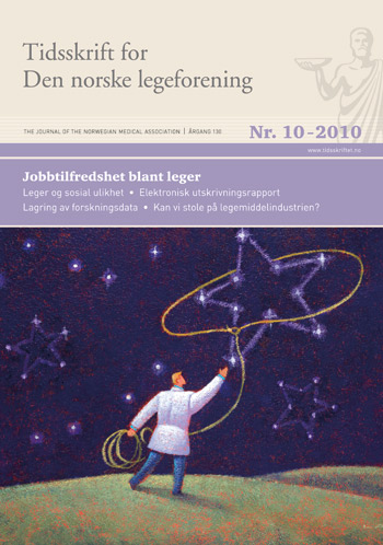 Forsidebildet Fornøyde leger () sporsmal_grey_rgb Artikkel Illustrasjon Lael Henderson, © Images.com/Corbis/SCANPIX Norske leger er tilfredse – med jobben og med tilværelsen for øvrig (se side 1028). Viktige temaer for legers arbeidshverdag: rammevilkår for spesialisthelsetjenesten og legens rolle som sykmelder, vil bli debattert på årets landsstyremøte som avholdes 26.5. til 28.5. 2010 i Oslo (se side 1062). Kommentarer ( 0 ) Dette kommentarfeltet modereres, men kommentarer blir ikke redaksjonelt behandlet ut over å sikre at de følger retningslinjer for vårt kommentarfelt. Denne artikkelen ble publisert for mer enn 12 måneder siden, og vi har derfor stengt for nye kommentarer. Publisert: 20. mai 2010 Utgave 10, 20. mai 2010 Tidsskr Nor Legeforen 20. mai 2010 130 : 1001 Publisert: 20. mai 2010 Utgave 10, 20. mai 2010 Tidsskr Nor Legeforen 2010 130 : 1001 PDF Får du ikke vist PDF-filen eller vil lagre filen, kan du høyreklikke på PDF-ikonet. Velg «Lagre mål/fil som..» og hent så opp PDF-filen i for eksempel Acrobat Reader. Skriv ut Anbefalte artikler