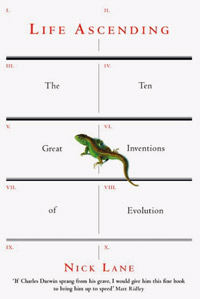 I Life ascending har den engelske biokjemikeren Nick Lane en original tilnærming til temaet livets opprinnelse og utvikling. Han beskriver og kommenterer ikke bare konvensjonelle teorier om evolusjonen som mange har gjort, men gir oss innsikt i livets egen oppfinnsomhet for å forstå livets utvikling på jorden. Han tar utgangspunkt i det han kaller ti nøkkeloppfinnelser i evolusjonen. Han har lagt følgende kriterier til grunn for sine valg: oppfinnelsen må ha revolusjonert den levende verden, være av den største betydning i dag, være direkte følge av naturlig seleksjon, ha ikonstatus – og at den fascinerer ham. Han argumenterer godt for sine valg: livets begynnelse, DNA, fotosyntesen, den komplekse cellen, seksualitet, bevegelse, syn, varmt blod, bevissthet og død. Han gir oss innsikt bl.a. i livets begynnelse, livets endringer og hva som betinger utvikling til et komplekst liv. Likeledes hvordan vi har ervervet oss innsikt i og kunnskap om evolusjonen. Her gis en god og nyttig repetisjon av den innsatsen innflytelsesrike forskere har bidratt med.