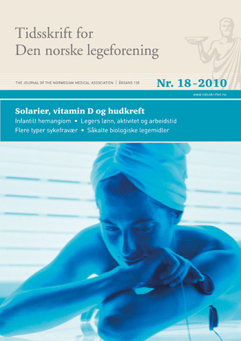 Forsidebildet Er solarier sunt? () sporsmal_grey_rgb Artikkel Illustrasjonsfoto © Carlo Bevilacqua/GV-Press/NordicPhotos Mange blir forvirret av motstridende råd om solarier. Oppveier faren for hudkreft en mulig positiv effekt på annen sykdom? En avveining mellom ulike hensyn er alltid vanskelig, særlig når vurderingen er basert på usikre data. Relaterte artikler Solarier, vitamin D og hudkreft Kommentarer ( 0 ) Dette kommentarfeltet modereres, men kommentarer blir ikke redaksjonelt behandlet ut over å sikre at de følger retningslinjer for vårt kommentarfelt. Denne artikkelen ble publisert for mer enn 12 måneder siden, og vi har derfor stengt for nye kommentarer. Publisert: 23. september 2010 Utgave 18, 23. september 2010 Tidsskr Nor Legeforen 23. september 2010 130 : 1793 Publisert: 23. september 2010 Utgave 18, 23. september 2010 Tidsskr Nor Legeforen 2010 130 : 1793 PDF Får du ikke vist PDF-filen eller vil lagre filen, kan du høyreklikke på PDF-ikonet. Velg «Lagre mål/fil som..» og hent så opp PDF-filen i for eksempel Acrobat Reader. Skriv ut Anbefalte artikler