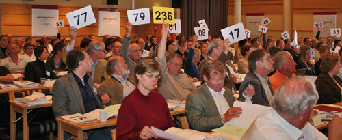 Mange viktige saker skal opp til votering under landsstyremøtet. Her fra avstemningen under et tidligere landsstyremøte. Foto Lisbet T. Kongsvik