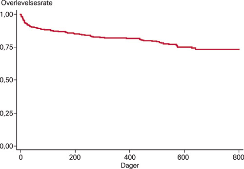 Mens letalitet betegner andelen som dør, kan man snu på flisa og beskrive andelen som overlever. Da snakker man om overlevelsessannsynlighet. Det fremstilles som oftest i et Kaplan-Meier-diagram (fig 1) (3).