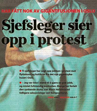 Sjefleger ved Oslo universitetssykehus sier opp. www.aftenposten.no/nyheter/iriks/Sjefleger-ved-Oslo-universitetssykehus-sier-opp-6798025.html (4.4.2012).