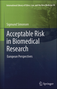 Hvor stor risiko er det akseptabelt at forskningspersoner utsettes for i medisinsk forskning? Det er hovedspørsmålet i Sigmund Simonsens oversiktlige og velskrevne bok. For å besvare spørsmålet tar Simonsen utgangspunkt i Europarådets Oviedokonvensjon og EU-direktivet om kliniske utprøvinger, der han identifiserer et proporsjonalitetsprinsipp: Relevante risikoer og byrder ved å delta i forskning skal avveies mot mulig nytte. Formålet med proporsjonalitetsprinsippet er å beskytte forskningsdeltakerne, å bevare tillit til forskningen og å etablere en felles standard for regulering av forskning i de europeiske landene. Prinsippet spesifiserer hvordan man i praksis skal avveie den enkeltes interesser mot samfunnets og vitenskapens interesser. Proporsjonalitetsprinsippet setter også grenser for hvor mye risiko og skade en frisk forsøksperson kan utsette seg for. Slik sett er det et paternalistisk prinsipp, og ut fra dets beskyttende intensjoner slekter det på føre-var-prinsippet.