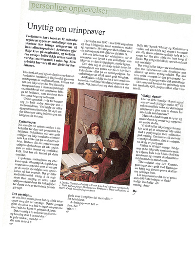 Allmennlege Arvid Vatle fra Stord mottok 30. september Ig Nobel-prisen 1999 imedisin. Han fikk den for «carefully collecting, classifying, and contemplating which kinds of containers his patients chose when submitting urine samples.» Artikkelen Unyttig om urinprøver ble publisert i årets påskenummer av Tidsskriftet (Tidsskr Nor Lægeforen 1999; 119: 1178 – 9). Vatles artikkel fikk, ikke uventet, store oppslag i Norges største og minste aviser og han ble intervjuet i et mangfold av radiokanaler rundt påsketider.