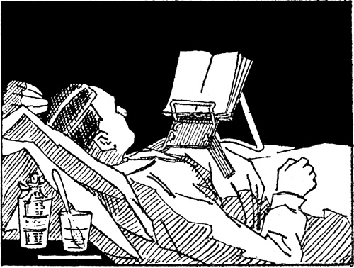 Mange sengeliggende patienter har savnet et praktisk bokstativ. Et sådant stativ konstrueret av sogneprest Bull er nu bragt i handelen og vil sikkert avhjelpe «et lenge følt savn». Stativet er meget hensiktsmessig, praktisk og lettvindt. Det står støtt på et hvilket som helst underlag av sengetepper eller puter og virker ikke trykkende. Boken holdes fast på stativet og er lett å blade i. Armene får hvile. Stativet er prøvet ved forskjellige sykehus med meget godt resultat, hvorfor vi har villet henlede kollegenes opmerksomhet på det.