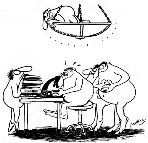 Det kom også en ung fysikkstudent til et forskningsinstitutt et sted i utlandet og ba professoren om å få en oppgave han kunne bruke til et doktorarbeide. Professoren sa: «Jeg vet om et nokså aktuelt problem som vi kunne undersøke. Da kan De gjøre slik og slik. De skal bruke den og den metoden, og jeg skal vise Dem nøyaktig hvordan De gjør det.» Studenten fikk litteratur, han fikk en omfattende innføring i problemet som han ikke kjente til fra før. I tillegg fikk han bruke alt utstyret på professorens laboratorium og fikk mer og mindre hjelp til å gjøre undersøkelsen. Til slutt skrev han det hele sammen til en avhandling, og også her fikk han hjelp. Så viste det seg at han hadde gjort en epokegjørende oppdagelse. Ære, berømmelse og penger drysset ned over den unge fysiker. Professoren som sto bak det hele fikk imidlertid ingen kreditt, fuglen var fløyet avsted til en fet stilling, hadde tatt med seg data og protokoller, og etterlot sin sjef til glemselen.