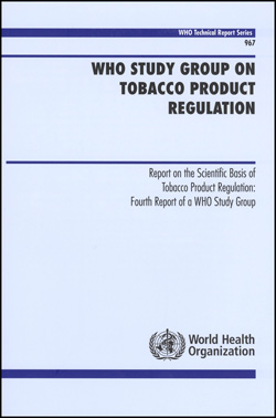 Report on the scientific basis of tobacco product regulation: fourth report of a WHO study group. Technical report series, No 967. 83 s, tab. Genève: WHO, 2012. Pris CHF 30