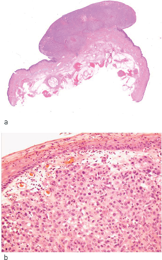 Diagnosen malignt melanom stilles ved histopatologisk undersøkelse (fig 1). Melanom klassifiseres i følgende hovedtyper: superfisielt spredende melanom, nodulært melanom, lentigo maligna-melanom, og akralt lentiginøst melanom (2) (fig 2). Det finnes også sjeldnere varianter, som desmoplastisk melanom. Bortsett fra nodulære melanomer kan alle hovedtypene foreligge som in situ-lesjoner (ikke-invasive) eller invasive. Diagnosen «nævuscelletumor med atypi» indikerer at man ikke kan utelukke et melanom, og dette tilsier ofte at lesjonen behandles som melanom (2). Flere karakteristika har prognostisk og behandlingsmessig betydning. De viktigste inngår i klassifikasjonen av maligne melanomer som obligate variable (7): tykkelse, ulcerasjon og mitosetall.