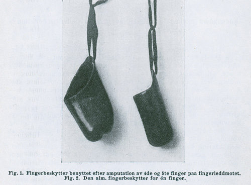 (…) Er beskytteren riktig lagt, kan den skadede i almindelighet utføre sit arbeide selv med ret betydelige fingerskader som saar, nylig utførte amputationer og reponerte luksationer og enkelte frakturer.