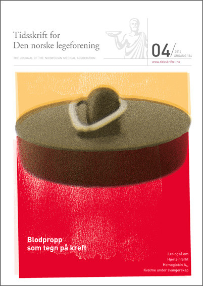 Forsidebildet FORSIDEN () sporsmal_grey_rgb Artikkel Illustrasjon © Superpop/Ørjan Jensen Når er en blodpropp bare en blodpropp, og når er den et tegn på alvorlig underliggende sykdom? Problemstillingen går til kjernen av klinisk medisin – det handler om tolking og vekting av symptomer og tegn, og det handler om å besvare det viktigste spørsmålet: Er det farlig, doktor? Kommentarer ( 0 ) Dette kommentarfeltet modereres, men kommentarer blir ikke redaksjonelt behandlet ut over å sikre at de følger retningslinjer for vårt kommentarfelt. Denne artikkelen ble publisert for mer enn 12 måneder siden, og vi har derfor stengt for nye kommentarer. Publisert: 25. februar 2014 Utgave 4, 25. februar 2014 Tidsskr Nor Legeforen 25. februar 2014 134 : 375 Publisert: 25. februar 2014 Utgave 4, 25. februar 2014 Tidsskr Nor Legeforen 2014 134 : 375 PDF Får du ikke vist PDF-filen eller vil lagre filen, kan du høyreklikke på PDF-ikonet. Velg «Lagre mål/fil som..» og hent så opp PDF-filen i for eksempel Acrobat Reader. Skriv ut Anbefalte artikler