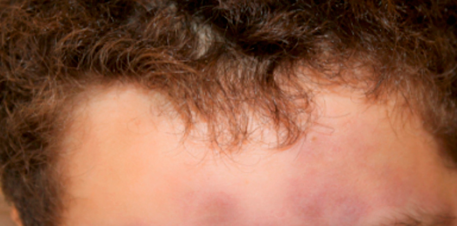 En tidligere frisk gutt i tiårsalderen, opprinnelig fra Midtøsten var henvist fra fastlegen til en halvakutt vurdering i barnepoliklinikken. Tre uker tidligere hadde han fått et rødlig utslett på ryggen, som etter noen timer ble mer blålig. Han anga smerter i venstre kne, men også at han hadde skadet dette kneet kort tid før, og noe smerter i høyre skulder. Moren mente at han hadde vært litt slapp de siste par månedene og kanskje hatt noe feber noen dager før utslettet kom.