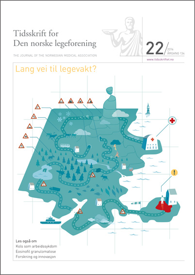 Forsidebildet FORSIDEN () sporsmal_grey_rgb Artikkel Illustrasjon © Stein Løken Gamle dagers leger kunne dra i sykebesøk med robåt eller hest og bli borte i dagevis. Av og til var pasienten blitt bra når de kom frem. Våre dagers pasienter må tilfriskne i køen på legevaktens venteværelse. Kommentarer ( 0 ) Dette kommentarfeltet modereres, men kommentarer blir ikke redaksjonelt behandlet ut over å sikre at de følger retningslinjer for vårt kommentarfelt. Denne artikkelen ble publisert for mer enn 12 måneder siden, og vi har derfor stengt for nye kommentarer. Publisert: 25. november 2014 Utgave 22, 25. november 2014 Tidsskr Nor Legeforen 25. november 2014 134 : 2119 Publisert: 25. november 2014 Utgave 22, 25. november 2014 Tidsskr Nor Legeforen 2014 134 : 2119 PDF Får du ikke vist PDF-filen eller vil lagre filen, kan du høyreklikke på PDF-ikonet. Velg «Lagre mål/fil som..» og hent så opp PDF-filen i for eksempel Acrobat Reader. Skriv ut Anbefalte artikler