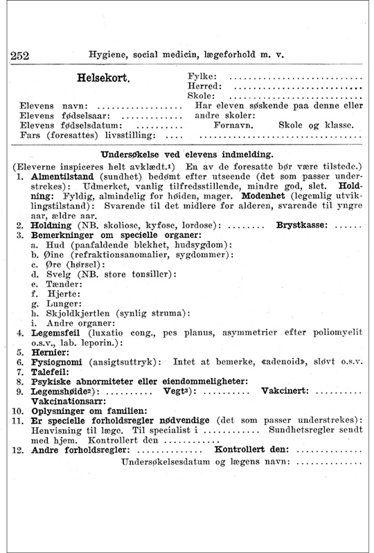 Jeg skal da først omtale undersøkelsen, det at finde frem ikke alene de syke barn, men hvad der for den generelle folkehelse og dermed for kampen mot tuberkulosen er det ulike viktigste, først og fremst de svaktbyggede barn, barnene med daarlig almentilstand uten sykelige symptomer – denne fundamentale sak, som har været saa sørgelig forsømt. Man maa jo istemme, hvad den fremragende skolebarnhygieniker og glimrende organisatoriske kraft, prof. Emerson i Boston sier: «Man har ikke betragtet skolebarn som syke, saalænge de har kunnet staa paa benene.» Jeg vil ogsaa fremhæve den skjæbnesvangre slendrian, at man slaar sig til ro med at et barn er slapt, fordi det har vokset saa sterkt. Man blir aldeles ikke slap av at vokse – og det endog sterkt i perioder, hvilket er normalt -, hvis bare disciplinen i hjemmet indretter sig paa disse vekstperioder, – hvis hjem, skole og læger forstaar dem.