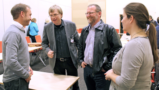 Lars Kittilsen (fra v.) i samtale med møteleder Vegard Høgli, Tor Severinsen og Sissel Gundersen. Foto: Stein Runar Østigaard