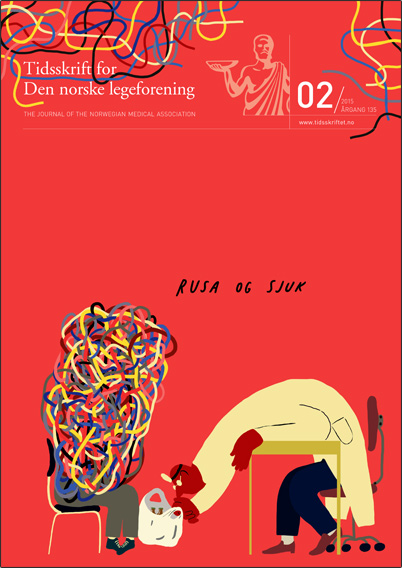 Forsidebildet FORSIDEN () sporsmal_grey_rgb Artikkel Illustrasjon © Mari Kanstad Johnsen Rusavhengige har flere somatiske plager enn andre. Det gir enda mer å flykte fra. Kommentarer ( 0 ) Dette kommentarfeltet modereres, men kommentarer blir ikke redaksjonelt behandlet ut over å sikre at de følger retningslinjer for vårt kommentarfelt. Denne artikkelen ble publisert for mer enn 12 måneder siden, og vi har derfor stengt for nye kommentarer. Publisert: 27. januar 2015 Utgave 2, 27. januar 2015 Tidsskr Nor Legeforen 27. januar 2015 135 : 99 Publisert: 27. januar 2015 Utgave 2, 27. januar 2015 Tidsskr Nor Legeforen 2015 135 : 99 PDF Får du ikke vist PDF-filen eller vil lagre filen, kan du høyreklikke på PDF-ikonet. Velg «Lagre mål/fil som..» og hent så opp PDF-filen i for eksempel Acrobat Reader. Skriv ut Anbefalte artikler