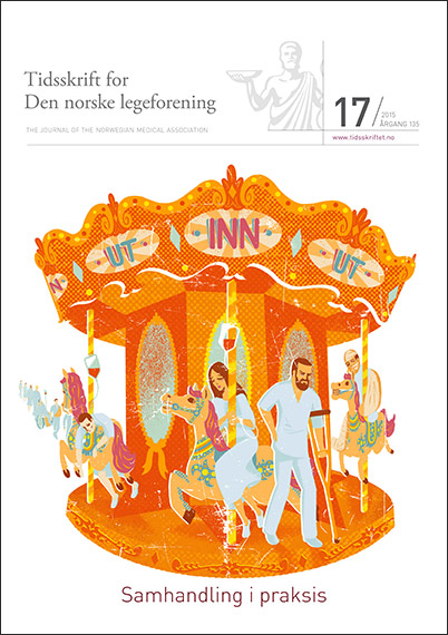 Forsidebildet FORSIDEN () sporsmal_grey_rgb Artikkel Illustrasjon © Christopher Nielsen 2015, Levy Creative Management, NYC Samhandlingsreformen ble lansert i 2009 med slagordet «Rett behandling på rett sted til rett tid». Seks år senere er en del oppnådd, men det er langt igjen til slagordets ideal. Kanskje burde man ha lagt til «...og for rett pasient»? Kommentarer ( 0 ) Dette kommentarfeltet modereres, men kommentarer blir ikke redaksjonelt behandlet ut over å sikre at de følger retningslinjer for vårt kommentarfelt. Denne artikkelen ble publisert for mer enn 12 måneder siden, og vi har derfor stengt for nye kommentarer. Publisert: 22. september 2015 Utgave 17, 22. september 2015 Tidsskr Nor Legeforen 22. september 2015 135 : 1523 Publisert: 22. september 2015 Utgave 17, 22. september 2015 Tidsskr Nor Legeforen 2015 135 : 1523 PDF Får du ikke vist PDF-filen eller vil lagre filen, kan du høyreklikke på PDF-ikonet. Velg «Lagre mål/fil som..» og hent så opp PDF-filen i for eksempel Acrobat Reader. Skriv ut Anbefalte artikler