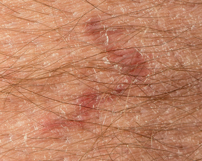 En tidligere frisk mann i 40-årene fikk et intenst kløende utslett på baksiden av begge lår åtte uker etter badeferie i et asiatisk land. Fastlegen mistenkte skabb og forsøkte behandling med permetrin. Pasienten ble ikke bedre og ble derfor henvist til hudlege.