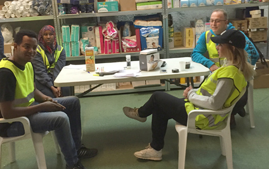 MULTIETNISK PERSONALGRUPPE: 37 nasjonaliteter var innom Fjellhallen i løpet av 50 dager. Det var en stor fordel å ha personale som snakker arabisk, dari, farsi, russisk mm. Foto: Drude Bratlien
